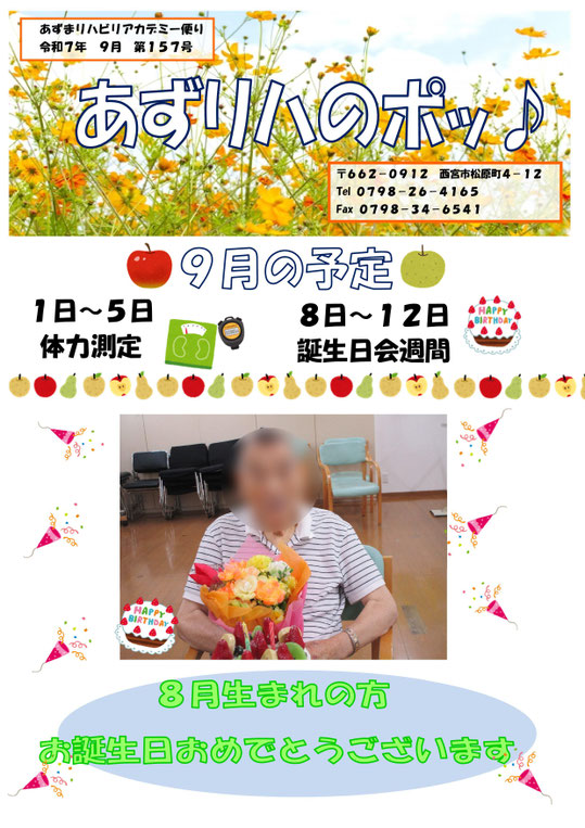 9月になりましたが、暑さはまだまだ続いていますね。台風もまだまだ発生するようなので、防災対策を怠らないようにしましょう。あずリハのポッ9月号が完成しました。是非ご覧ください。